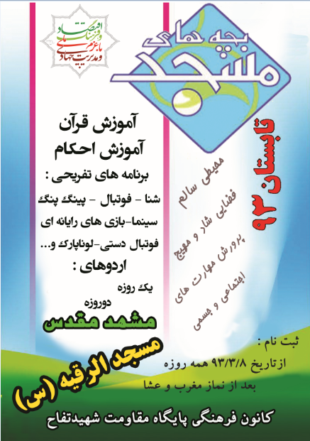 زمان :سه شنبه ۹۳/۰۲/۰۲ بعداز نماز مغرب و عشاء